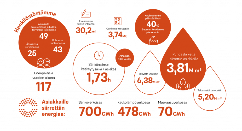 Sähköverkossa asiakkaille siirretyn energian määrä oli 700 GWh , kaukolämpöverkossa 478,3 GWh  ja maakaasuverkossa 70,3 GWh. Puhdasta vettä siirrettiin asiakkaille 3, 81 milj.m³.